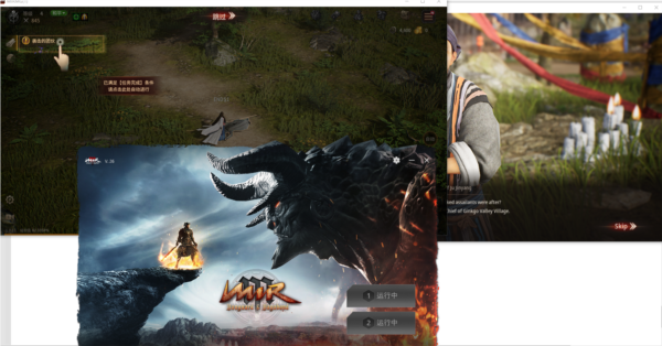 在游戏安装完成后,先开启海豚的【传奇M**服】加速选项。加速成功后,启动游戏登录器,依次使用不同的账号,用【1开始游戏】和【2开始游戏】进去就是**游戏的状态。