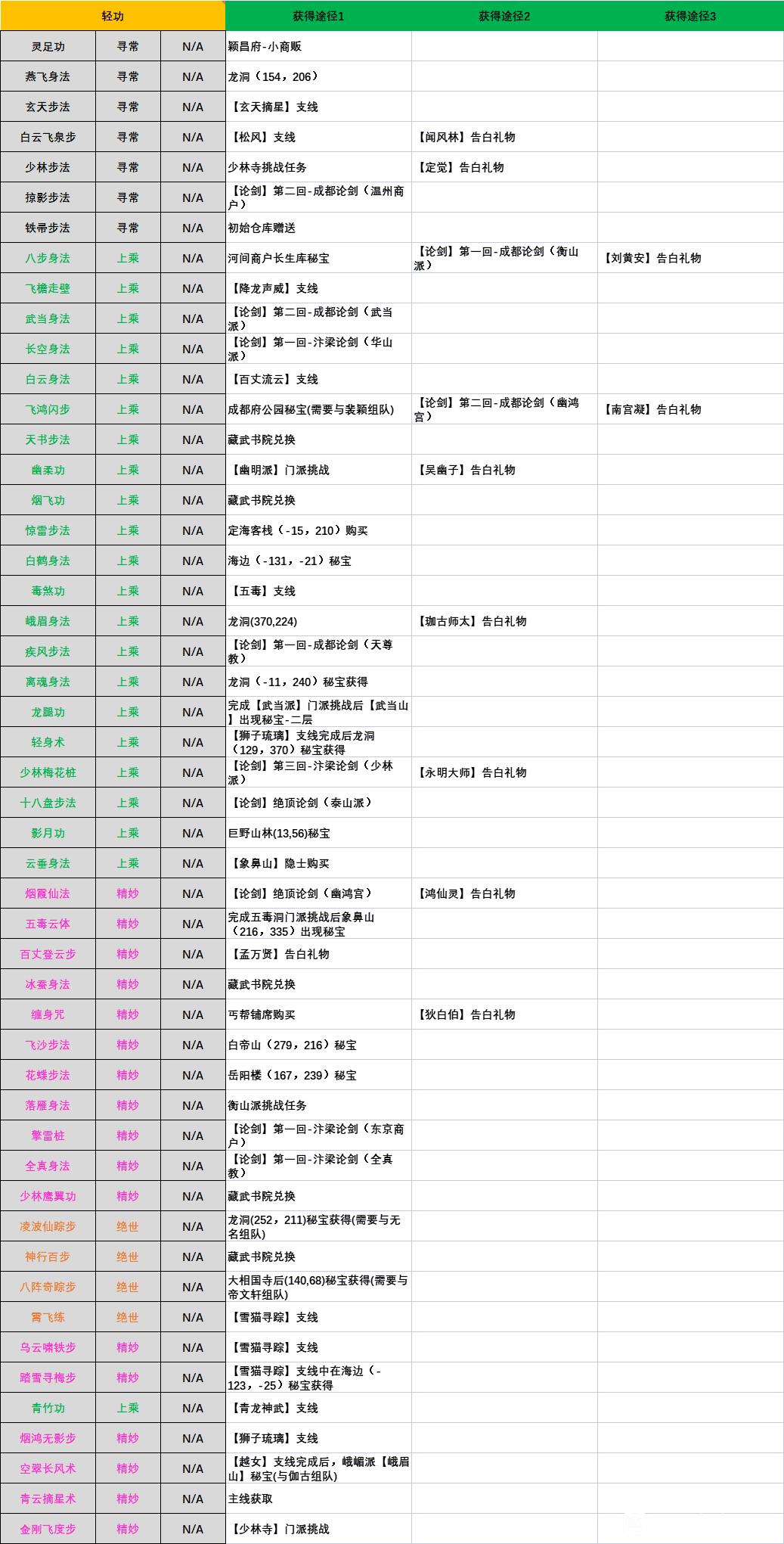 以上就是本篇攻略的**内容了,总的来说轻功身法有着许多种,玩家只需要参考上文内容进行寻找即可,更多资讯敬请关注本站网。