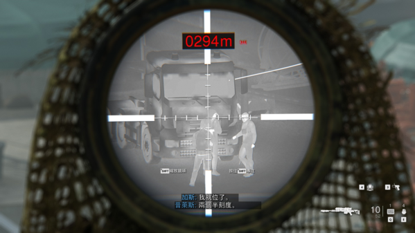 主要在于听从普莱斯的指令,躲避敌人和调整狙击准星偏移(图示准星未调正)