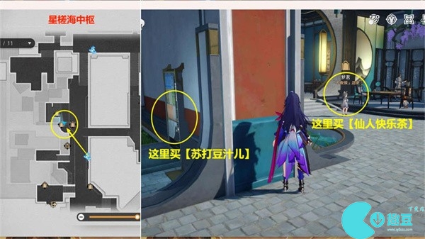 4、【苏打豆汁儿】和【仙人**茶】在下图位置可购买到,【苏打豆汁儿】每天能买5个,【仙人**茶】每天只能买1个。