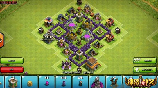 5个防御建筑都有交叉火力点,在交叉火力中间放上资源建筑,这是最基本的理念。资源设施放得太过于集中,而且**在每次下线之前把资源用光,前期对于资源防守不用那么严格。