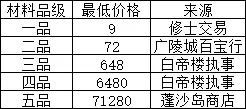 炼器赚钱效率就不如炼丹了。不过炼器有个优势就是几乎所有人都会为了提高器道能炼制纯阳而炼制十把符器、十把法器、十把法宝。这里就分享一下每个品级的**成本的炼制配方。