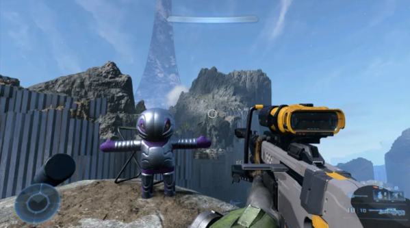 具体彩蛋,是下图的“神风烈士迷你**娃”,士官长心里应该笑开花了哈哈哈,以及一把弹力狙击枪和一份UNSC资料(这个资料是属于鹈鹕号坠落这一任务中的收集品),娃娃一开始是倒在地上的,靠近后会 咯叽~ 一下立起来。