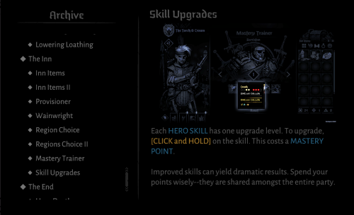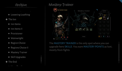 精通训练者(酒馆页左下左数第四个按钮,也就是右侧第二个按钮)是你**可以升级英雄技能的地方。你可以通过战斗获得技能点在这里使用。