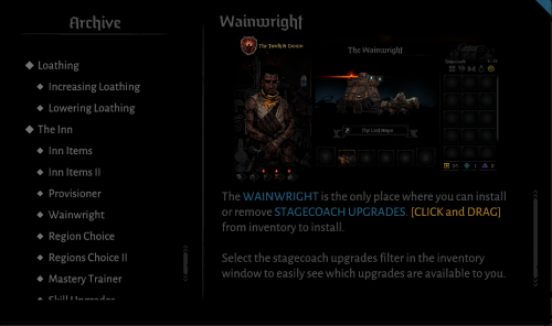 马车建造者(酒馆页左下左数第三个按钮)是**你可以安装和改造马车升级的敌方,选择马车升级并拖拽到格子中,鼠标移动到升级上可以查看其效果。