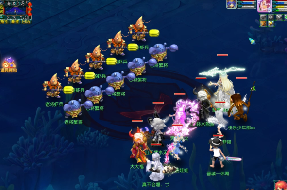 10.紧急任务:在小副本中,玩家将随机触发紧急任务,安慰努力的大海龟(海试会场34,106)、受伤的蟹将(海试会场98,105)。