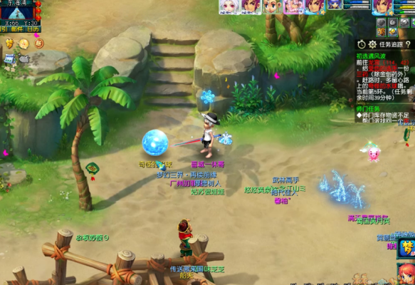 4.奇怪的水球:领取到龙宫、水晶宫的任务时,可以直接在东海湾(60,30)点击奇怪的水球,直接传送到对应NPC面前。