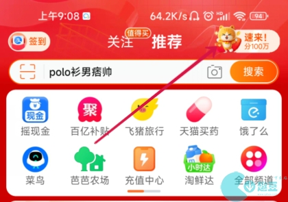 **步:进入淘宝app页面,点击右上角的【速来分100万】