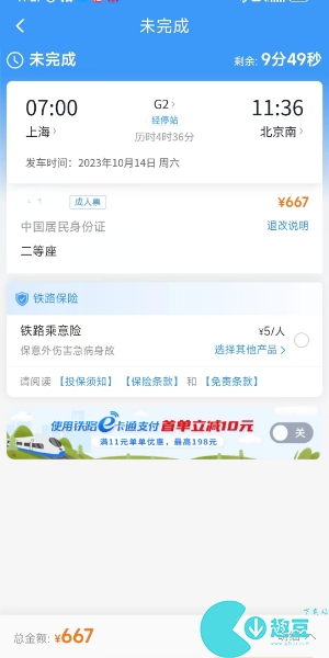 7.**小伙伴们就可以进入付款界面,会有【十五分钟】的付款时间哦,付完我们就够买完了静音车厢的座位了。