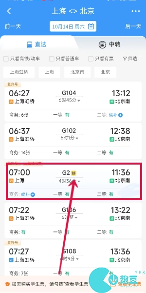 3.接着需要小伙伴们选择【车次】,而我们的静车厢的右侧是有一个带黄标的静字;