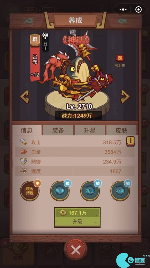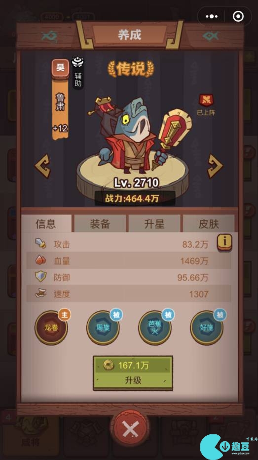 程普:血量550亿,大招攻击随机2名敌人附带减速,受击增加自身防御。