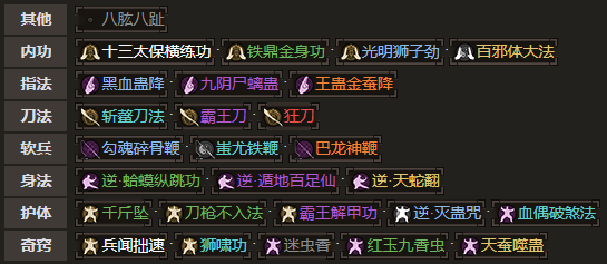 ⑤【狂刀】神一品刀法,伤害足,**好,可惜打点差、释放慢,现在沦为玩家的外伤挂件。不小心挨上一刀还是很危险的。
