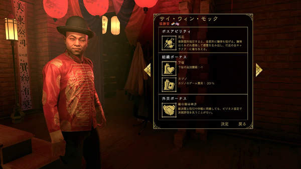 人物:莫赛永是非常忠诚的华人帮派子弟,年纪轻轻就来到西海岸。其冷静狡猾的性格,使他成为协胜堂可怕的首领。他从不会干白工,也不会说废话。
