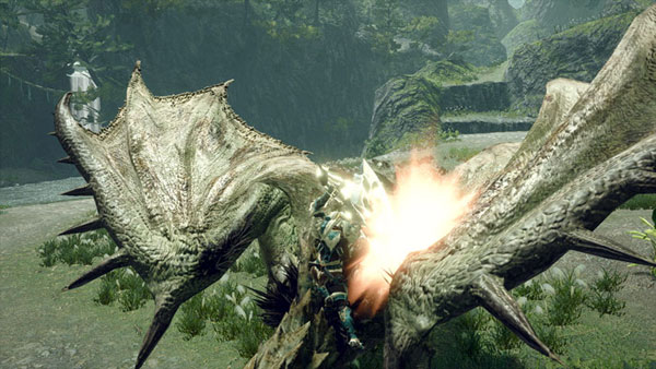 施加全身体重的回旋斩。命中时,猎人的身体会向上跳跃,并趁势使出蓄力斩...这便是此招的真正目的。