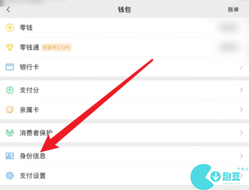 2、找到身份信息选项进入。