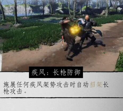 施展**疾风架势攻击时自动招架长枪攻击。
