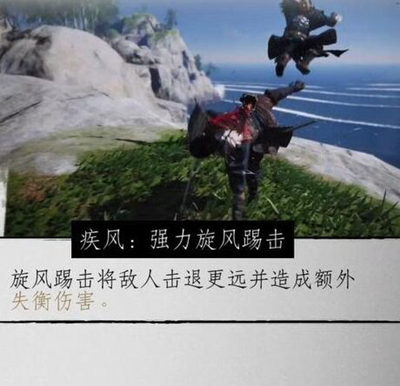 旋风踢击将敌人击退更远并造成额外失衡伤害。