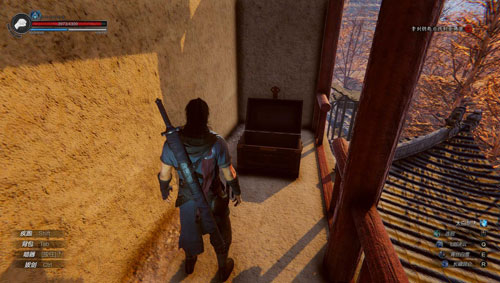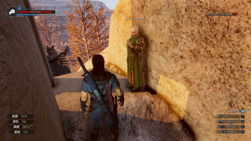 然后走到屋顶左侧,可以看到路走上去,可以看到梦衣大师。