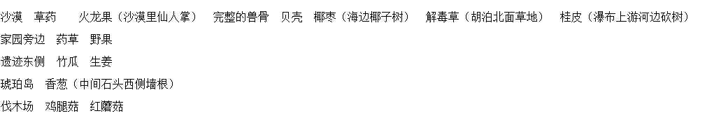 感觉桂皮是比较难找的,在这里特别说明一下,桂树是下面图中这个样子的,在地图右上角区域比较多。