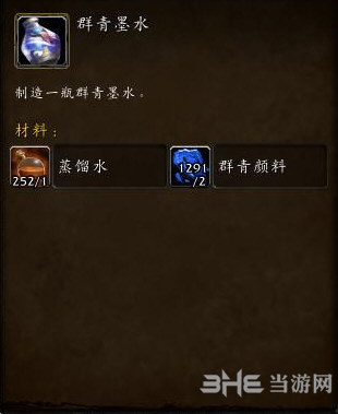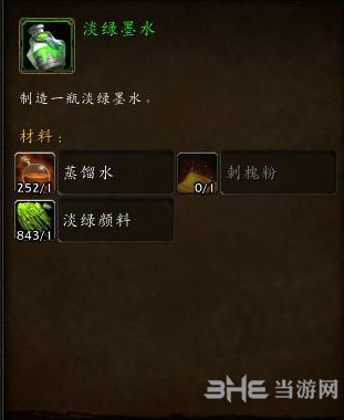 制作铭文相关物品所需要的墨水分为三种:白色品质的赤红墨水和海蓝墨水,以及绿色品质的淡绿墨水,对应的草药研磨颜料为赤红颜料、群青颜料和淡绿颜料。其中群青颜料和赤红颜料为研磨草药大概率出,淡绿颜料是小概率出。