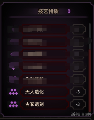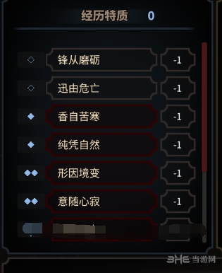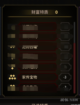 首先天赋点可以选择的有3类——历练特质、财富特质、技艺特质
