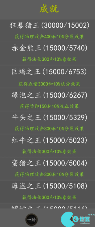 6、成就打5000就行了,别打多,没用,建议优先打猪王、牛头和蛮猪,一共30%的**,五件装备只要洗出一个**或者两个中级,就有100**了。