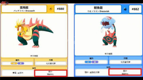 雷鸟龙和鳃鱼龙的隐藏特性是「拨沙」,沙暴天气时速度x2;