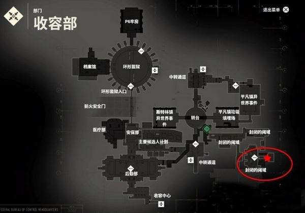 位置在【收容部 封闭的阈域】,在完成支线任务【争分夺秒】后会解锁这片区域。