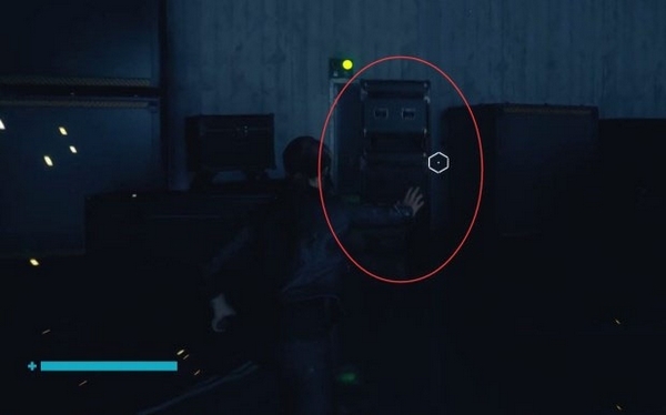 在①处需要使用投掷来移开房间门口的箱子,然后进入房间(图中②的位置)。