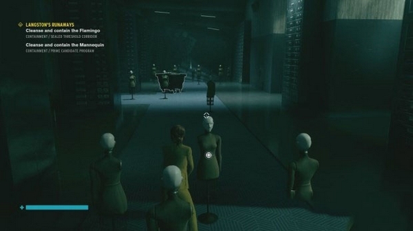 首先与【主要候选人计划】中倾斜的图书馆走廊尽头与【人体模型】互动,如果找不到可以参考下图的具**置。