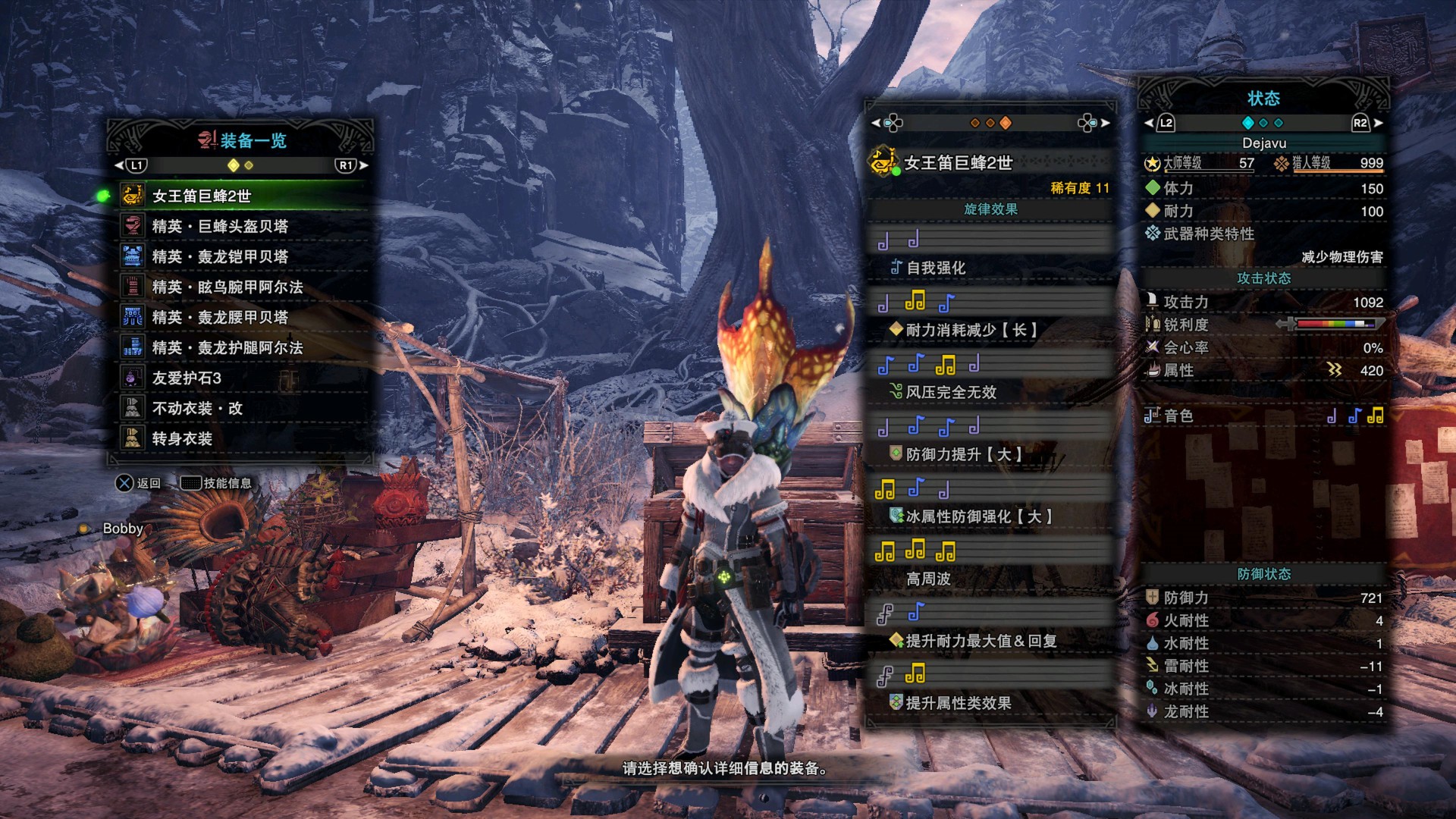 风压**无效,防特大,冰耐特大,突破耐力到200附带强走效果,提升武器属性。