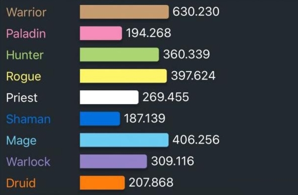 魔兽世界怀旧服职业比例 60版本职业占比情况