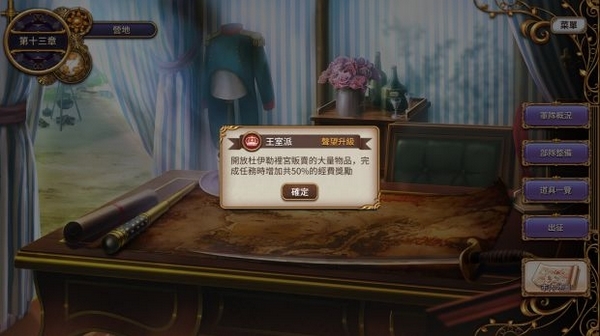 王室派声望**2〉3, 50%的经费奖励GET