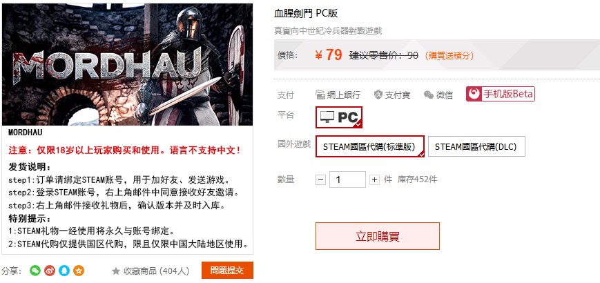 雷霆一击又叫血腥剑斗在凤凰商城的售价为79元,一样是steam激活但比起官方渠道要便宜不少,感兴趣的玩家可以点击下方的地址进行购买。