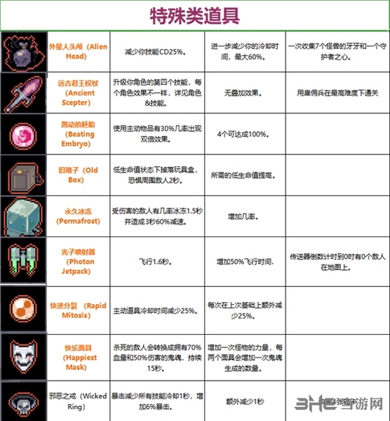 以上就是雨中冒险2道具大全介绍,希望以上介绍能帮助玩家了解游戏中所有的道具,更多游戏的资讯攻略请继续关注本站网单机游戏频道。