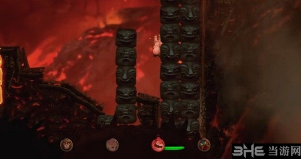 这一关主要是要用芭蕉扇扇风,将前面的岩浆方块吹黑,变黑之后,