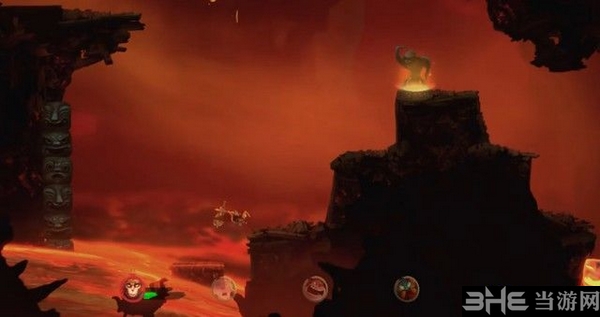 这里要先将上面的岩浆扇黑,然后击碎岩浆,上去,里面是有很多小平台的,
