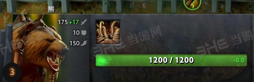 熊的属性如下图:1200点血,外加一个攻击有几率捆绑控制敌人的被动技能。