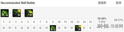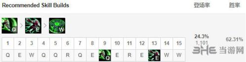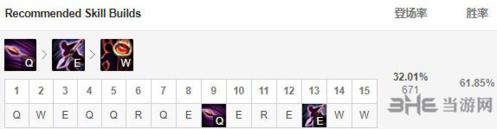 潘森的加点主Q副E,有R点R,韩服平均胜率61.85%。