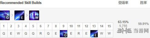 刀妹的加点主Q副E,有R点R,韩服平均胜率59.91%。
