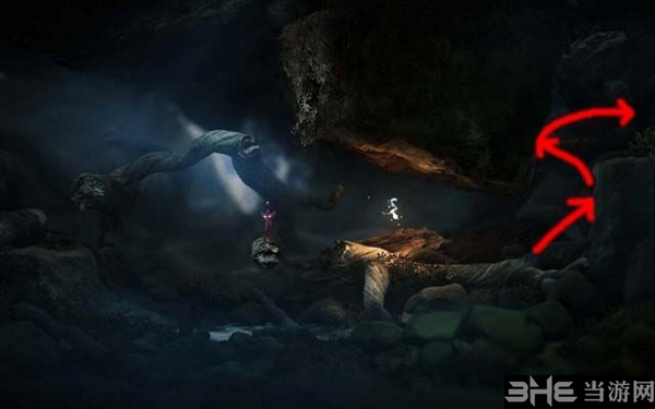 这里同样也是,按照如下图箭头所示的路径进行一系列的反跳即可上去。