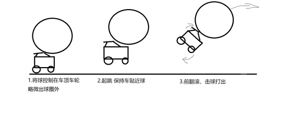 车的后轮要略微的出球圈外一点,这样一来你的前翻滚就能直接用车尾做出地面投射了。