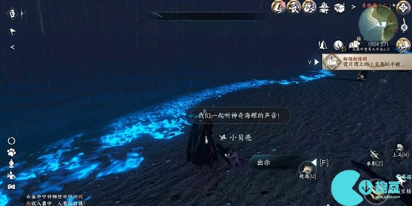 1、首先前往东极海(1904,571)的地方在,在这里路过“小贝壳”的旁边就可以进行触发。