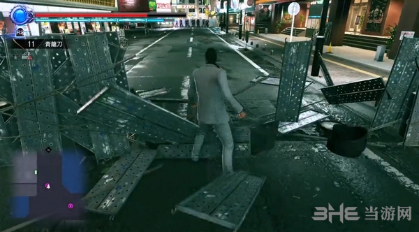 在神室町街头一路杀到真岛的工地。这时候已经开始出现精英怪了,比较难打,可以捡地上的武器抡他。