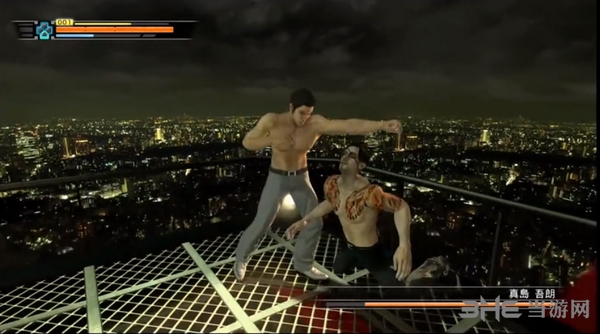 触发与真岛吾朗的BOSS战。**章的BOSS战,真岛不会用他的招牌小刀。真岛比较烦的是,当他身上冒紫气时,垫步的距离很远,拥有较强的闪避能力。