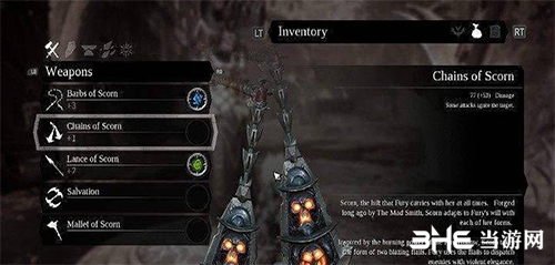 蔑视之链是暗黑血统3中可获得的第二把武器——解锁火焰荒魂自动获得。可以进行快速攻击,但攻击范围很小。它造成的伤害不高,但能让目标着火——在一段时间内敌人会持续受到火焰伤害。