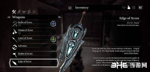 蔑视之刃是狂怒篇能获得的**一把剑。使用它可以进行惊人的长范围攻击。不过,攻击间隔很长,需要一些有效的战斗技巧。