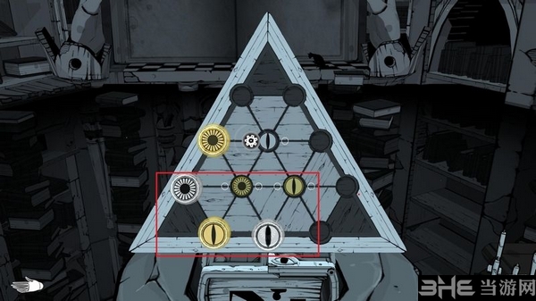 此时将上方黄颜色大瞳孔转入**,再转动左下转盘就能行了。