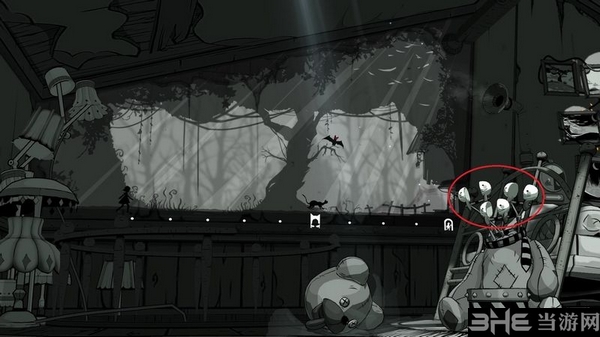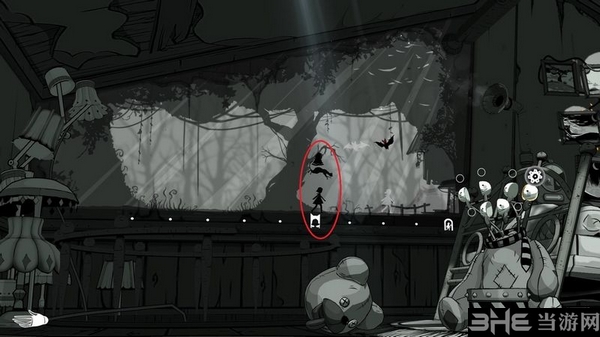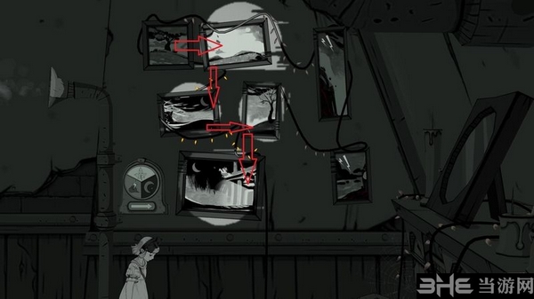 指向开关你可以看到扳动开关后影子人物、猫和蝙蝠下一步出现的位置。