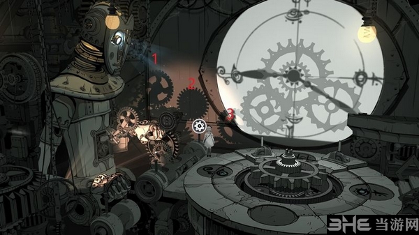 此时你可以控制机器人面前的操纵杆,让墙上的齿轮影子移动。